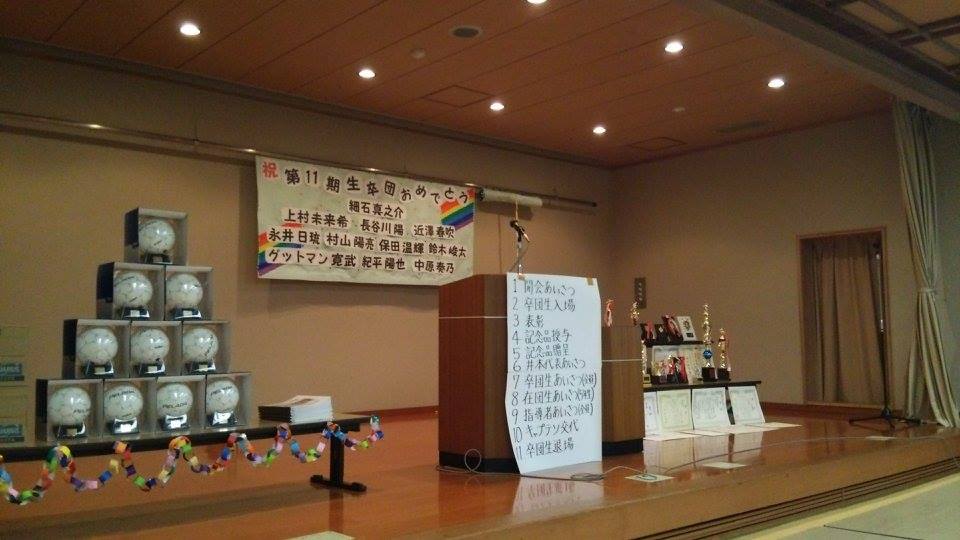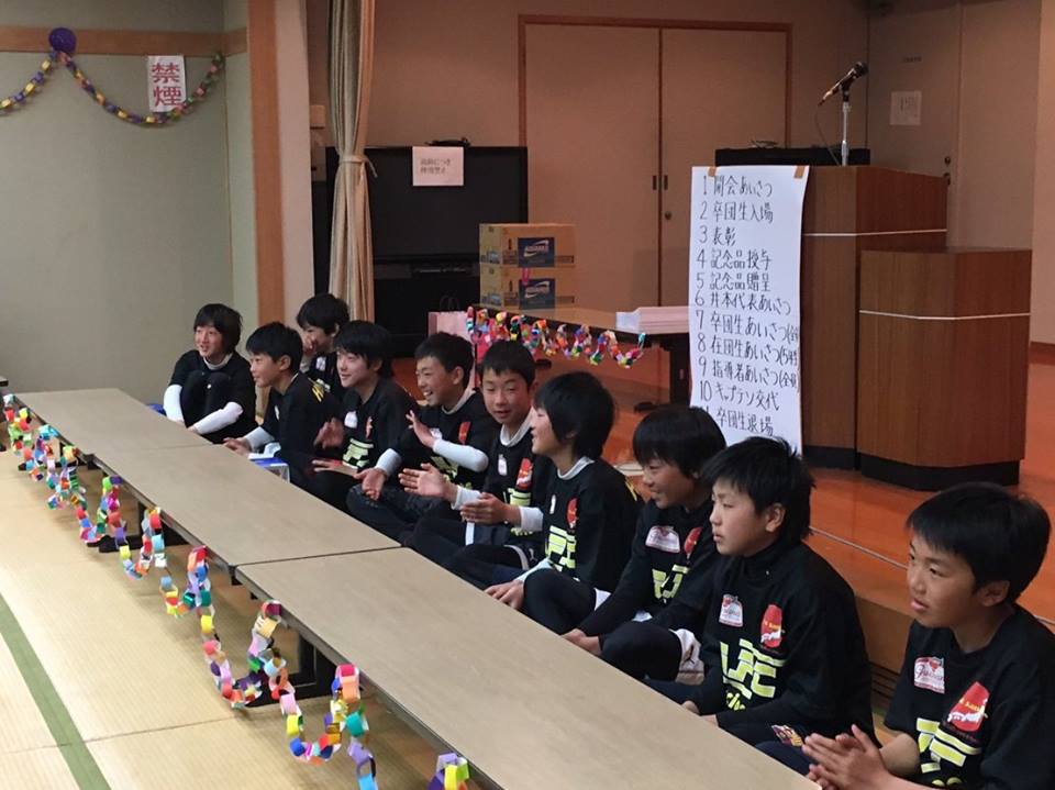 11期生 卒団式 UP遅くなりすいませんm(__)m3/26(日)安濃FC 第11期生の卒団式が開催されました。 新旧役員さんに頑張っていただき、セッティング完了!例年と会場が違ったので何かと大変だったと思いますが…ありがとうございます。 卒団生からの挨拶。 贈る言葉。5年生から。 4年生 3年生 2年生 1年生 神妙に?聞き入ってます。 キャプテン交代。 サプライズでタバちゃんの就職祝い。 役員さん手作りカレーを美味しくいただきました! 午後は安濃ソフトボール場へ。5年生やOBチームと対戦。 お父さんチームと。 お母さんも頑張りました。動画もあります! 小雨降る中でしたが、何とかサッカーできてよかったです!新6年生、頼みますよ! 夜も大変楽しい時間を過ごさせていただき、本当にありがとうございました。新旧役員の皆様、準備・運営・後片付けとお世話をおかけしました。おかげさまで大変良い卒団式にしていただいたと思います。卒団生保護者の皆様、長い間お世話になりありがとうございました。各ご家庭の宝物を預からせていただき、心から感謝していおります。今後の彼らの活躍を、楽しみに見守っていきたいと思います。 PR