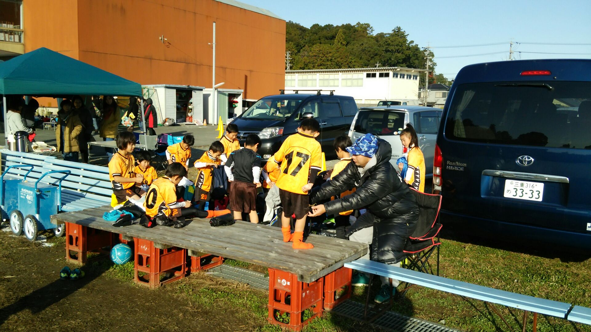 玉城招待 U9 結果 玉城招待 玉丸城カップU9 結果安濃 1-6 勢和安濃 1-1 明倫安濃 4-0 玉城(紺)安濃 0-10 修道今日はチビッコ14人をハイエースに詰め込んで、チョロコーチとともに玉城さんの招待試合に参加してきました。結果はご覧の通り。上手になってるなあ、と感じることもたくさん。まだまだやなあ、と思うこともたくさん。最後の試合、凹んで逃げ出しそうになっていた選手もいたけど、後半はやれてたんじゃないかな。自分より早いヤツ、でかいヤツをどうやったらやっつけられるのか?これからも頑張って技術を磨いてほしいと思います。玉城JFCの皆様、いつもいつもありがとうございます。おかげさまで今日も楽しい一日を過ごすことができました!