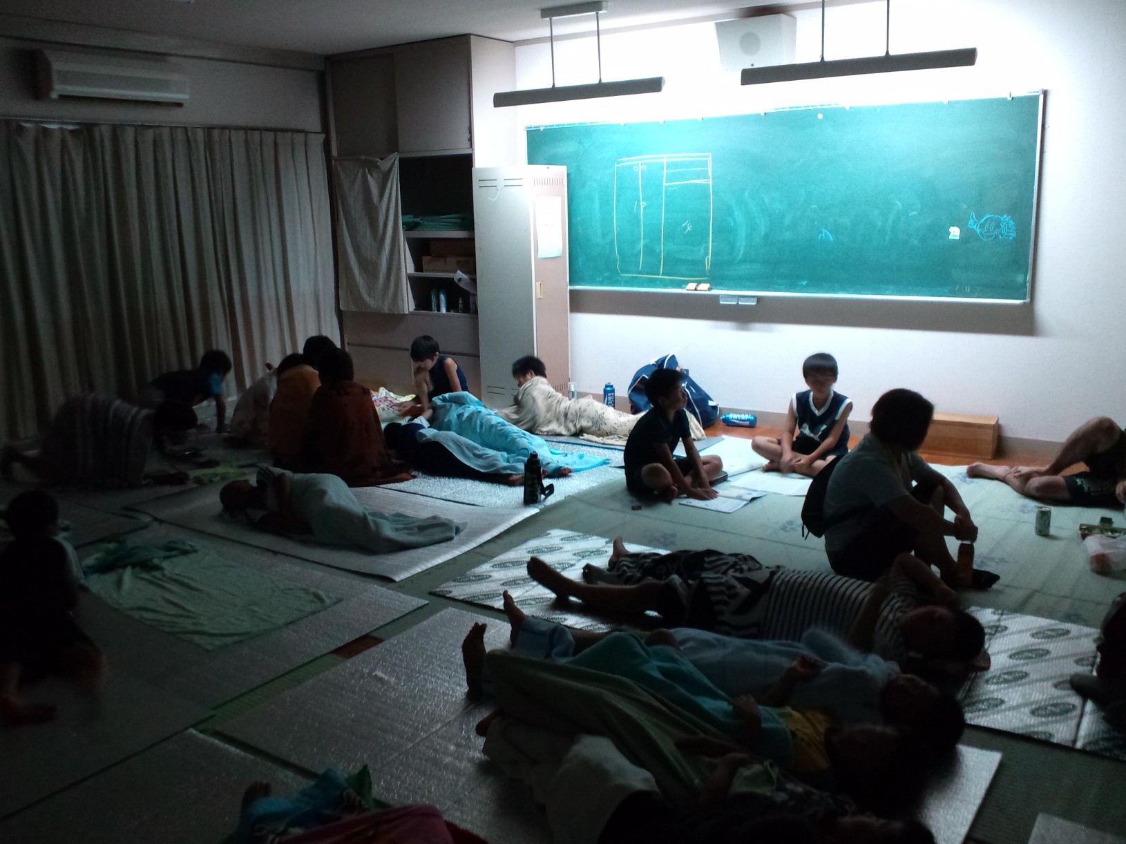 寝る人、勉強する人、トランプする人。